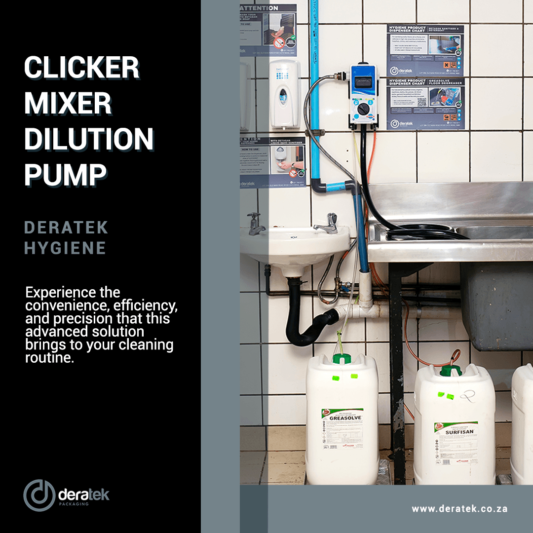 Elevate your hygiene standards while reducing costs with the Deratek Clicker Mixer Dilution Pump. Experience efficiency, precision, and smart savings in one powerful package.